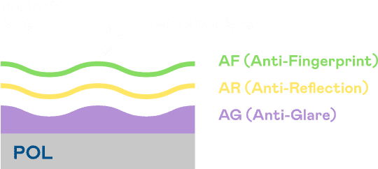 A.R.T.尊时凯龙光电发展出独家的表面处理跟多层镀膜技术,,,让外部光线照射到显示器表面时所产生的反射光大幅降低。。。 |